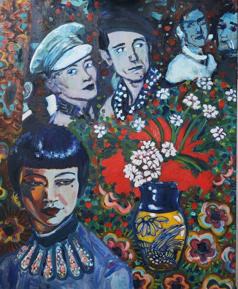 I create scenes of subtle intrigue or camaraderie inspired by the dynamics between people in pubs and in social gatherings, My paintings celebrate an old and decadent time with a dash of 1980's glamour.