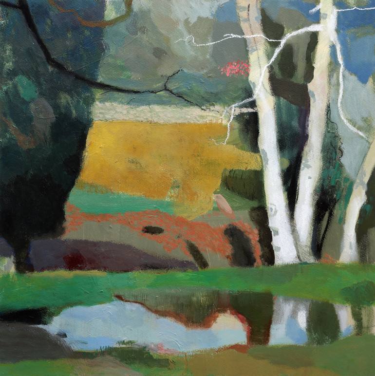 Kimberley Day is a working artist who lives on the Isle of Purbeck on the south coast of England. Her abstracted landscapes are a response to her local environment which she regularly walks, cycles and swims through. These ever-changing emotional landscapes are described through her application of paint and pastels in an attempt to capture both the literal place but also the feeling and energy of the trees, the sky and earth — the vibration and magic that is held in the light, the soundlessness when lost in the forest or crossing empty but well trodden paths. Endeavouring to use a palette that expresses the tonal harmony of our natural environment and enable her to share this meditative process with you — here living on that infinite boundary between land and sea. • Open to commission • Currently working with Interior Designers creating prints and original works for commercial spaces.