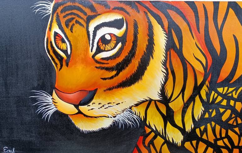 In this captivating abstract Tiger painting, my brushstrokes dance across the canvas, weaving an enigmatic tapestry of colors and emotions. The tiger's essence is captured through a fusion of vibrant hues, evoking both the darkness of the jungle and the mystique of the untamed spirit. Swirling patte...