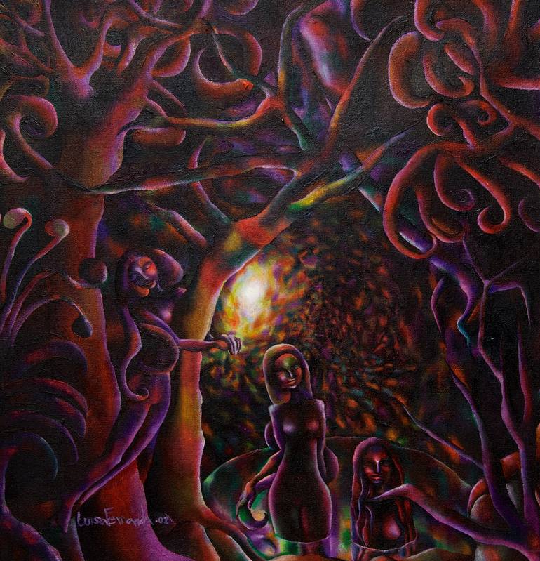 Oil and acrylic on canvas. The work "The fairies of the cavern" represents the existence of fairy worlds.