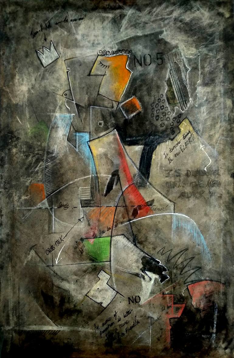 Inspired by the cubist principles of passing through and two objects existing in the same place at the same time as used by the early cubists like Picasso, Georges Braque and Juan Gris and the narrative style of Jean-Michel Basquiat, where words are included as part of the work. But instead of being...