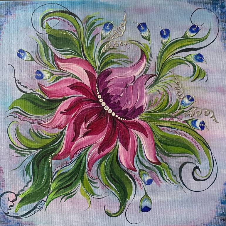 I am a London based artist. My colourful art is inspired by the beauty of flowers and Ukrainian Folk Art - Petrykivka. Petrykivka is included in the UNESCO Representative List of the Intangible Cultural Heritage of Humanity. My art is inspired by the beauty of flowers, my Fantasy Flowers are special, extraordinary and inimitable. Each painting merges my fantasy, experience and memories, and it’s all in response to the beauty I see around me. Painting allows me to reveal the beauty I discover in tiny, intimate details of the flowers and nature. Usually, when I’m asked how long it takes me to complete a painting, I respond as follows: All my life. And this journey is pure adventure! As each my flower is one-of-a-kind, unrepeatable, original and totally different. I am using add imaginary elements to my flowers and make them unique, delightful flower-inspired fantasy. I aim to create paintings which touch both the feeling part and the thinking part of the mind. Watching my enchanted flowers is like meditation, as they are not only incredibly beautiful, but also deep and captivating. It consists of various brushstrokes, multiple thin lines, which gives a painting certain transparency and weightlessness. Symbols of happiness, protection and eternity are encoded in this kind of art.