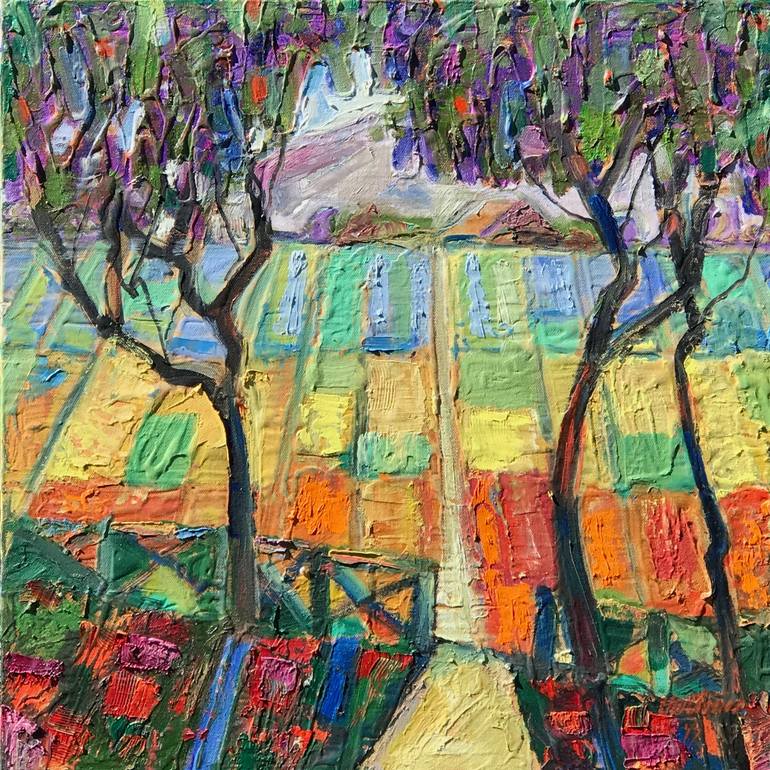 The flower fields of Half Moon Bay provide the world with flowers. The ever-changing color patterns attract me to my favorite spot. I hope the viewer walks away with an uplifting feeling. I use oil on canvas for the color brilliance and quality.