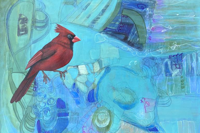 The game of life…can you see the bigger picture or are you a pawn? This is a painting in mixed media. The red cardinal bird is painted in oil. The background is painted in acrylic paint, China marker, white charcoal, and ink. This painting will need to be framed behind glass. This painting is si...
