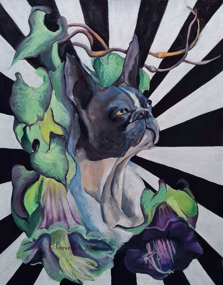 My plan for this painting was to be a little bit sarcastic about the way we treat out dear pets, but in the end, I just had so much fun painting it... and we do own one of those x