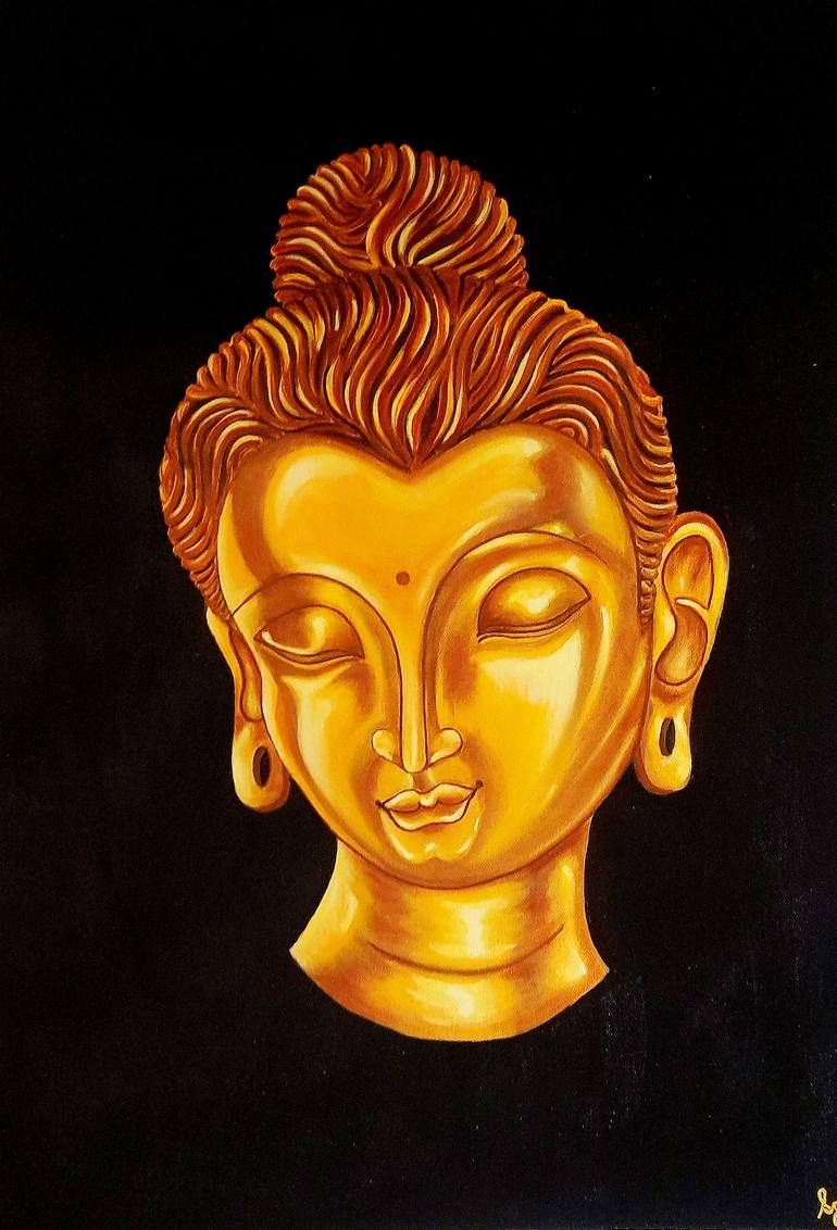 "The Golden Buddha" is a captivating original painting, a contemporary take on the 4th-century Gandharan Style Buddha head unearthed in Taxila. While the original sculpture was unadorned, this artwork reimagines the bust in a radiant golden color, symbolizing Buddhism's core tenets of spiritual free...
