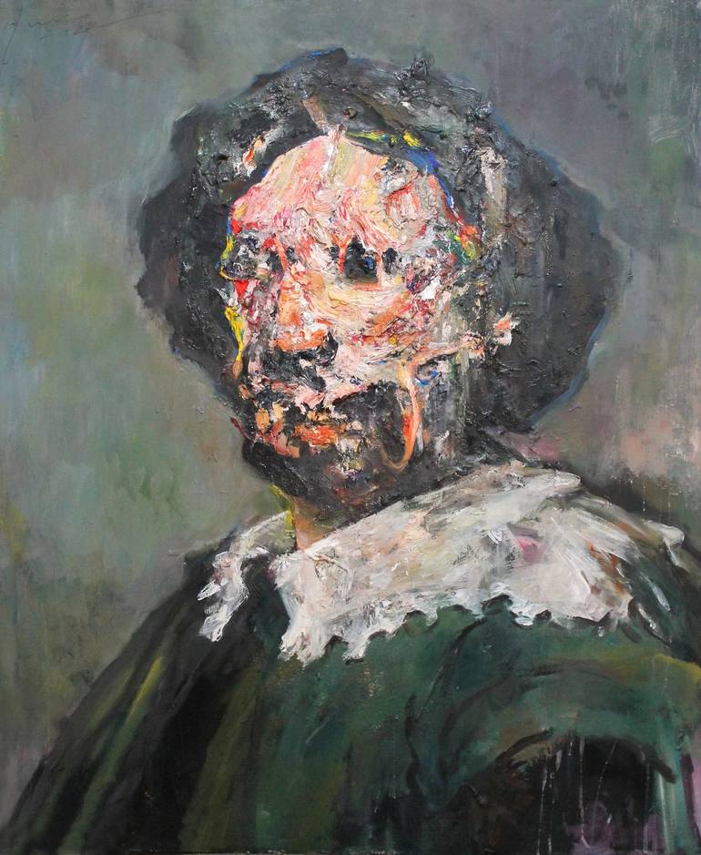 Oil and Mixer Media on canvas 34 W x 45 H ( 94 x 115 cm ) The Good Juan Expressionist painting inspired by classical baroque portrait transformed in contemporary vision the flesh and physiognomy are completely transfigured as sign of the times the thickness is given by the addition of many material ...