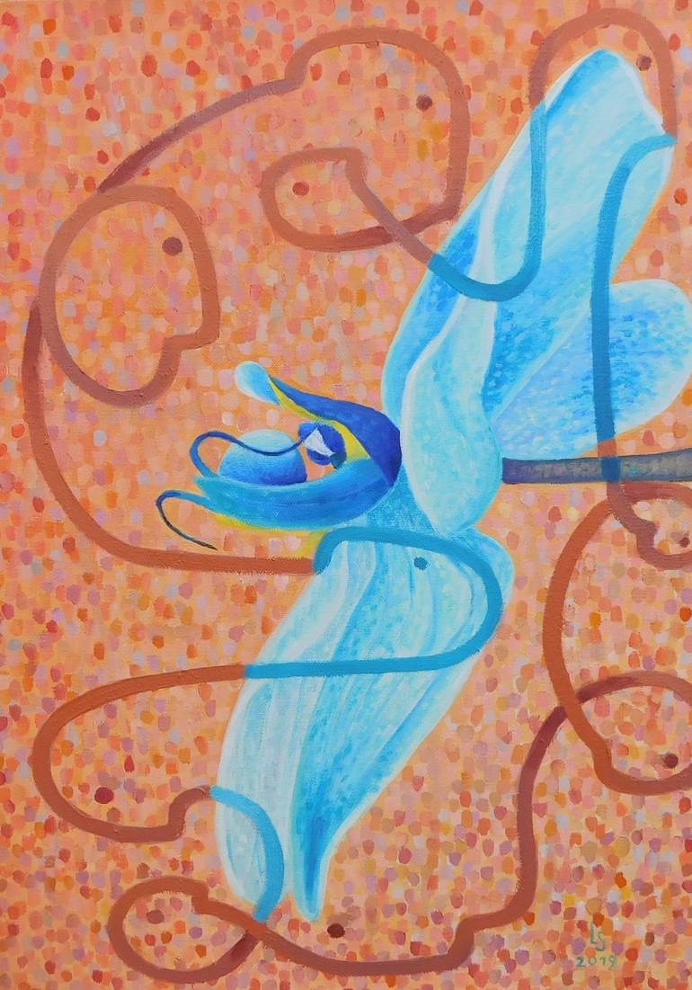 I was inspired by the rare type of orchids. It looks like a strange creature or a hieroglyph of angels. I use oil on canvas technique it allows me to get wider diversity of nuances and subtitles.