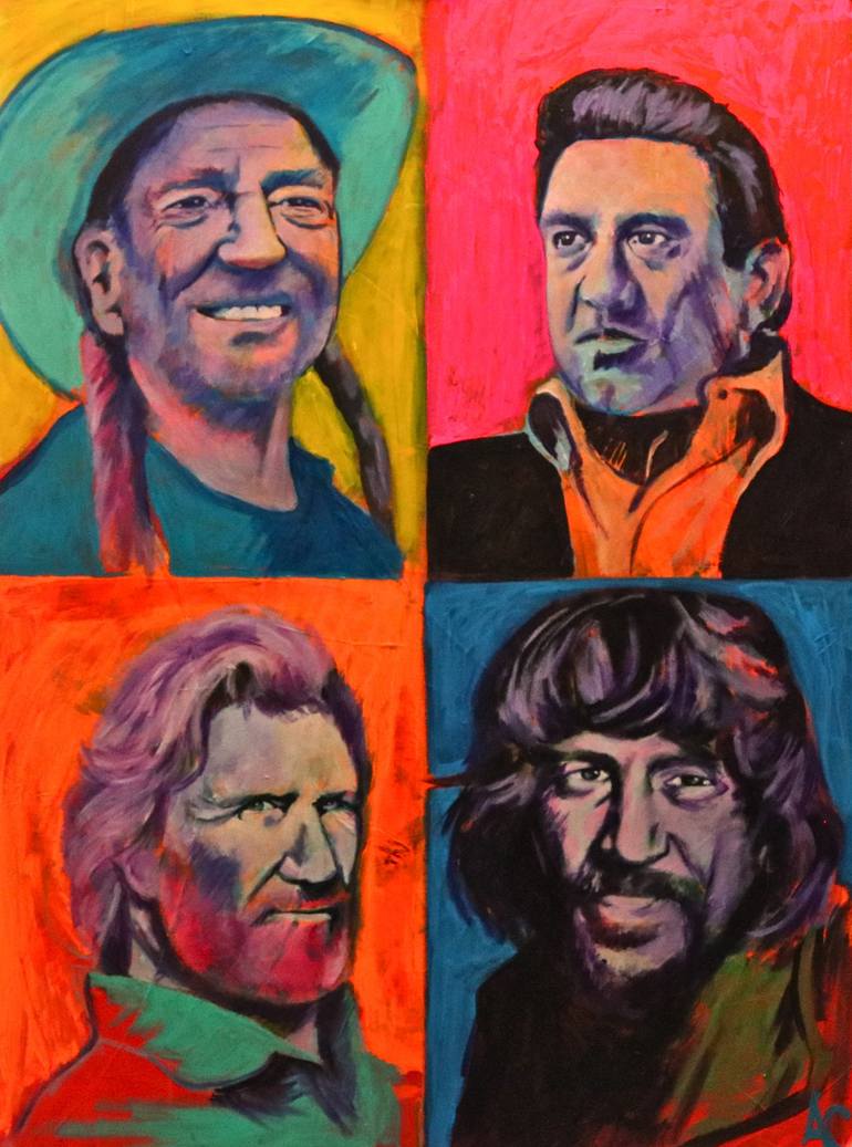 I live in Texas and ever since I moved here I've been exposed to new types of music. The HIghwaymen are a well known country music group that includes some of the most iconic musicians in the genre. I've painted most of them individually before but never as a group. I was inspired to finally take th...
