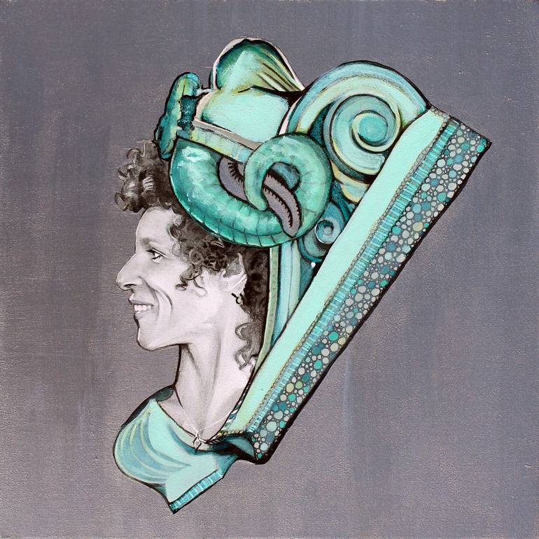 When painting, headdresses and crowns deify Kate Kelton’s subjects. She uplifts the Unsung Sheroes & Heroes, Patriarchy Smashers, Warrior Survivors, Silence Breakers, Philosophers, Truth-Tellers, Whistle Blowers and Thought Giants of all stripes. She paints her portraits cloaked in the garb of statues Ladislav Šaloun sculpted onto the train station that her great-grandfather, Josef Fanta, designed for Prague in 1901 - 1909. Apotheosis through a reclaimed, reapplied Art Nouveau. Sampling her own lineage, she transforms a historical body of work, itself a thing of lasting beauty; exchanging granite for graphite, plaster for paint. In Photoshop, she first combines the desaturated faces she's found, sourced or shot of her chosen subjects, with the black and white photos from her family and friends, of the statues in situ. Then she uses graphite, inks and acrylic paints and glazes to create the works on panel or canvas, literally uplifting and elevating her battle-weary subjects to the highest reach of architectural strata. 'Ancient and distant godlike beings, surveying a dying empire, trade places with the fresh blood of her subjects. The work presents a tactility against the digitized space, and represents a taking, an acquisition of power back from the tastemakers. Here, the mantle of the artist is above brand influencer, above internet commentator, above mere marketability. In their gaze is a warning, “Art is immortal. Come for me, why don’t you?”' ~ Micah Chaim Thomas "Kate's recent work is a matter of expansion through contrast - she is as ephemeral as her subjects are concrete architecture; she is structural when her subjects should slip through your fingers like too-fine sand. Taken as a whole, the works in her magnificent series Sentry are incredibly intelligent, but when looked at individually, you come to understand that these are statements of life beyond themselves. The series take embellishments of a Prague train station designed by her great-grandfather, Josef Fanta, and combines these with portraits of women who have stood against the sexual harassment and assault rampant in Hollywood. These women, like Kate herself, have suffered in the era where powerful men, every bit as immovable as the train station, wielded their power without check. The portraits emblazoned on architectural elements, they are marked against the edifice, every bit as permanent, and perhaps even more defining.