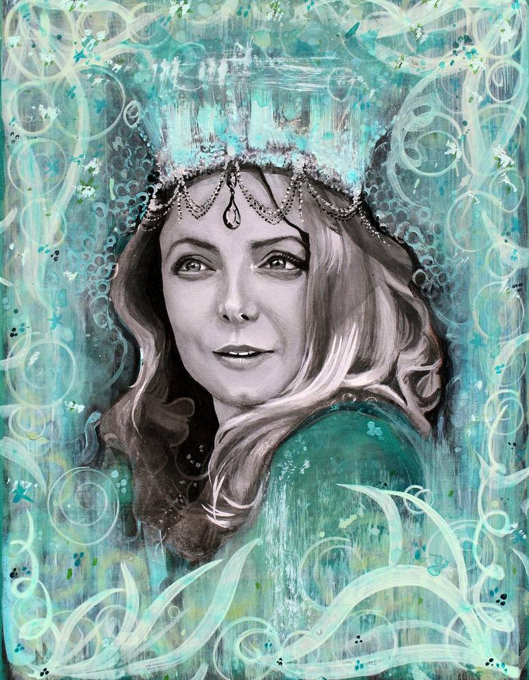When painting, headdresses and crowns deify Kate Kelton’s subjects. She uplifts the Unsung Sheroes & Heroes, Patriarchy Smashers, Warrior Survivors, Silence Breakers, Philosophers, Truth-Tellers, Whistle Blowers and Thought Giants of all stripes. She paints her portraits cloaked in the garb of statues Ladislav Šaloun sculpted onto the train station that her great-grandfather, Josef Fanta, designed for Prague in 1901 - 1909. Apotheosis through a reclaimed, reapplied Art Nouveau. Sampling her own lineage, she transforms a historical body of work, itself a thing of lasting beauty; exchanging granite for graphite, plaster for paint. In Photoshop, she first combines the desaturated faces she's found, sourced or shot of her chosen subjects, with the black and white photos from her family and friends, of the statues in situ. Then she uses graphite, inks and acrylic paints and glazes to create the works on panel or canvas, literally uplifting and elevating her battle-weary subjects to the highest reach of architectural strata. 'Ancient and distant godlike beings, surveying a dying empire, trade places with the fresh blood of her subjects. The work presents a tactility against the digitized space, and represents a taking, an acquisition of power back from the tastemakers. Here, the mantle of the artist is above brand influencer, above internet commentator, above mere marketability. In their gaze is a warning, “Art is immortal. Come for me, why don’t you?”' ~ Micah Chaim Thomas "Kate's recent work is a matter of expansion through contrast - she is as ephemeral as her subjects are concrete architecture; she is structural when her subjects should slip through your fingers like too-fine sand. Taken as a whole, the works in her magnificent series Sentry are incredibly intelligent, but when looked at individually, you come to understand that these are statements of life beyond themselves. The series take embellishments of a Prague train station designed by her great-grandfather, Josef Fanta, and combines these with portraits of women who have stood against the sexual harassment and assault rampant in Hollywood. These women, like Kate herself, have suffered in the era where powerful men, every bit as immovable as the train station, wielded their power without check. The portraits emblazoned on architectural elements, they are marked against the edifice, every bit as permanent, and perhaps even more defining.