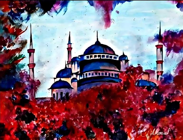 In this captivating painting, you've artistically depicted one of Turkey's most renowned mosques, Istanbul's Sultanahmet Mosque, commonly known as the Blue Mosque. The artwork transports viewers to the heart of Istanbul, where the mosque stands as an architectural marvel and a symbol of cultural and...