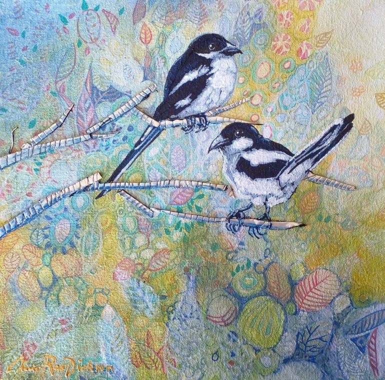 I have these Jackie Hangman birds in my garden in Barrydale, Western Cape. They are not only beautiful but are invaluable as they alert us when there are snakes about - especially the venomous variety. They are natures little armed response units! This painting exudes a quiet serenity and brightnes...