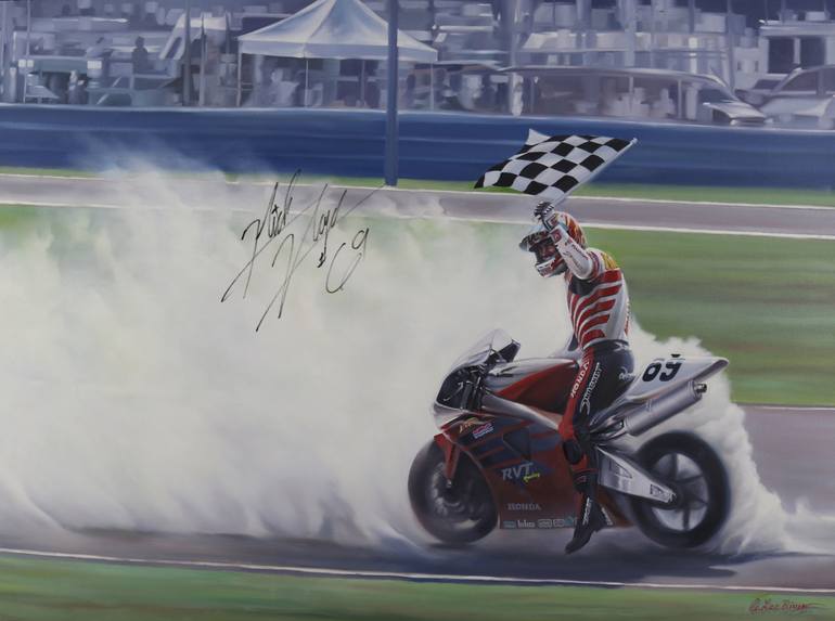 "The Kentucky Kid", is an original OIL PAINTING hand signed by NICKY HAYDEN himself. I MUST find a GOOD home for this piece. Nicky Hayden was a dear friend of Lee's and he is, like everyone else, heartbroken by his loss. He was a wonderful and special person that touched everyone he met. This pain...