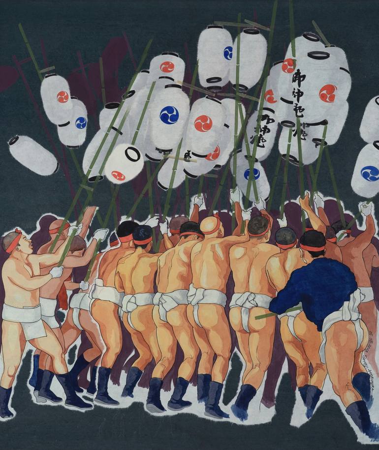 Inspired by a unique festival called the Lantern Festival. Local men in Fundoshi clash each others' paper lanterns violently until they all fall apart. It's so exciting to see naked men jostling and shoving while lanterns are tearing and flying apart exuberantly.