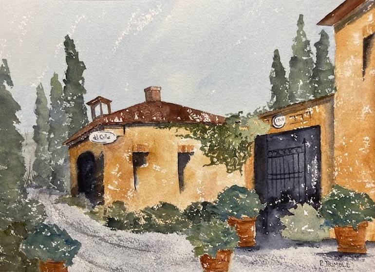 A fabulous visit to Tuscany last year inspired The Lemon House, one of my special Tuscan Series paintings. This 18th century building hides a surprising secret. A different angle of the building would reveal that the left side of this antique structure hides a long section behind the swaying cedars...