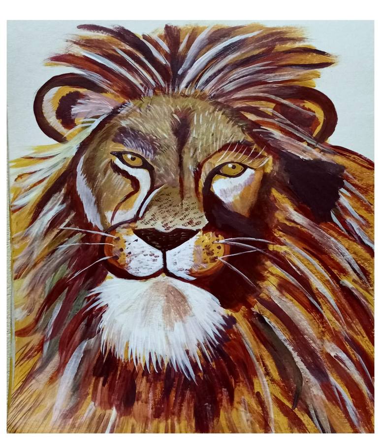 Acrylics paints are used for the lion painting. The hint of abstract is given to it. I personally like to paint wild animals that's why I painted this lion. you can get it in customized size and material. Do visit artby_sheza on insta.
