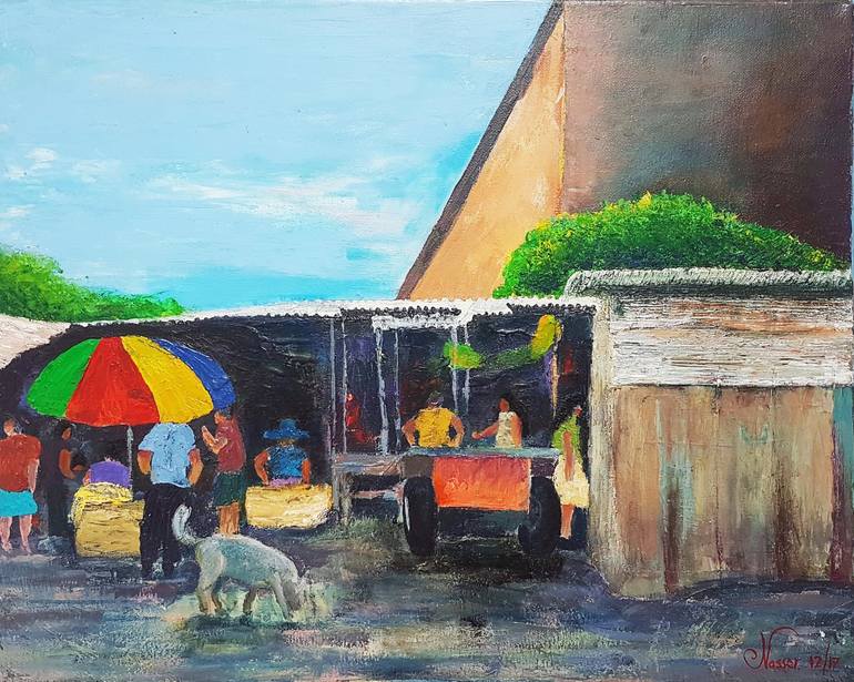 Nasser Mejía Moreno was born on October 27, 1982 in the city of Managua. He moved to the city of Granada when he was 6 years old, where from an early age he showed interest in drawing; He arrived in Nicaraguan art at the age of 18, where he began drawing courses at Casa de los Tres Mundos and CPC in the city of Granada, which did not continue until 2008 where he was welcomed as a student by Amy Bushnell and began to interact with artists such as: Ricardo Maya, Eduardo Arias, Alex Lluent, among others. Nasser's artistic proposal is: Expressionist, regionalist, manners and even impressionist, with a clear weakness for color and an experimental integration of textures. Among his favorite themes we have: markets, flowers, roosters, cars, wooden and zinc houses, and of course his best-known series as "Granada doors" worked with relief texture. In 2013 he began to develop and sell his own works and murals for different businesses, schools, hotels, among others. In 2014 he participated in his first collective exhibition and began to teach drawing classes "Our little brothers" and in 2017 he obtained the position of teacher of visual arts at the educational center "Granada International School" As of 2019, he participates in several collective art exhibitions such as: "Cre-Arte para recrearte" at the Nicaraguan Institute of Hispanic Culture, "Reinterpretando el Prado", "Artem Contempus" at Casa de los Tres Mundo, among others. In August 2019, he won the contest organized by the North American embassy called "North American Heritage" and was selected to participate in the "Substrate" contest with the theme "Environmental Awareness" promoted by the French Alliance in November of the same year.