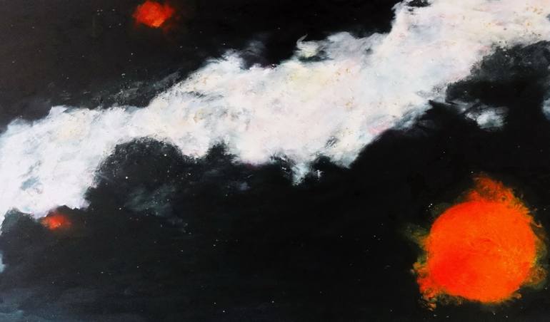 As I was working on The Ecology of Star Earth exhibition my great-grandson was visiting and asked for a story . I told him about the stars and our Milky Way and as a little boy he asked me to explain .I told him I shall paint it so he can see it . As promised I began some days later to paint my idea...