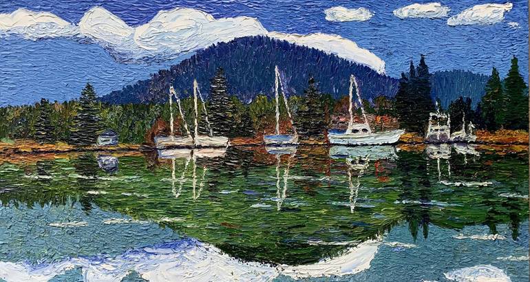 This multilayer oil painting features one of the serene and calm bays at beautiful Sunshine Coast along the Pacific Ocean. The place I was very lucky to visit frequently before all the travelling restrictions. I always felt joyful and happy there❤️ The painting belongs to the series of my works dev...