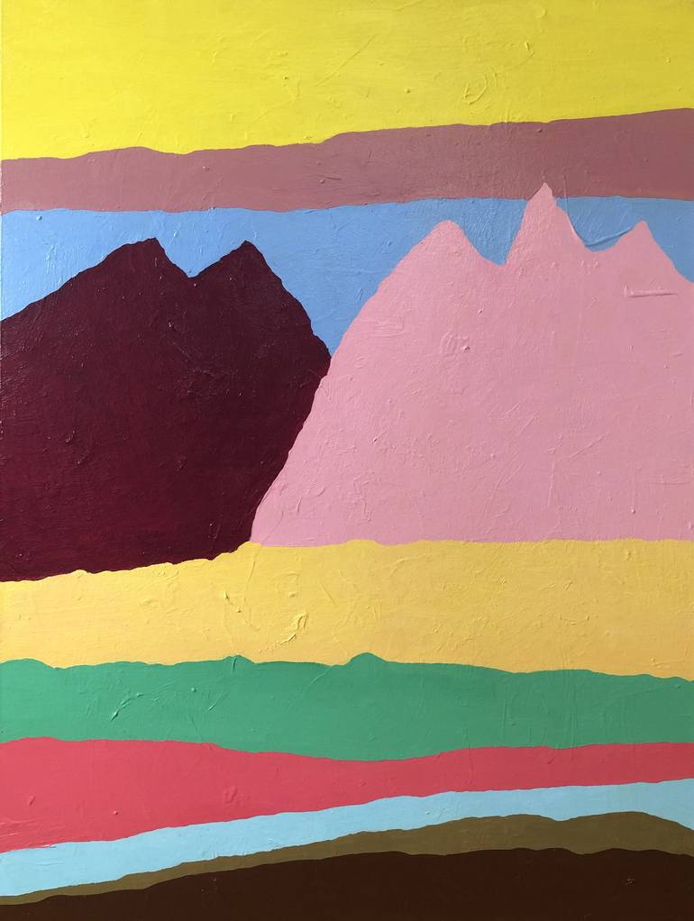 Inspired by the real and imagined landscapes of New Orleans. Multiple under-paintings create a textured surface, as though the final icing on a layered cake. Finished with a semi-gloss varnish. Framed with a simple, elegant, rough-hewn wood frame. See detail photo.