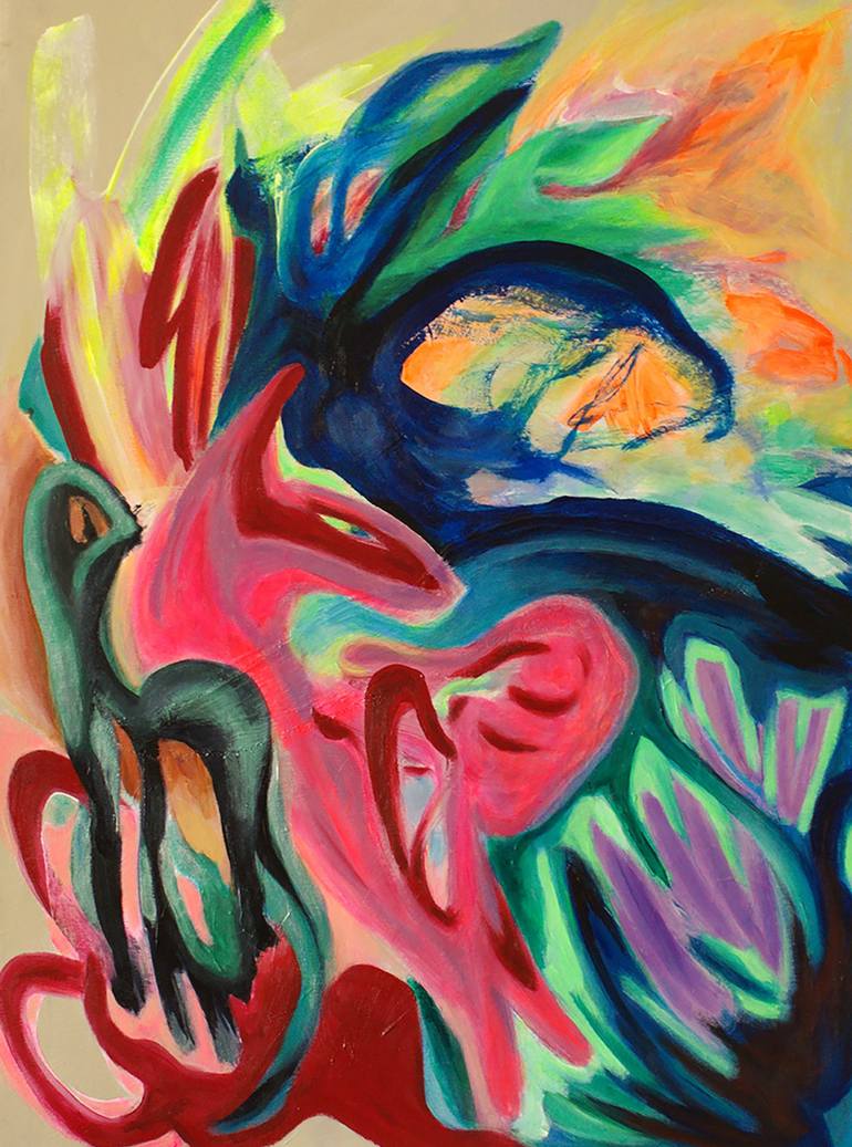 I build my wonderland by painting, in which the animals and plants give me energy and peace. In reality, I get inspiration and happiness from nature. This piece is a vibrant acrylic painting on a 2cm-stretched canvas, adorned with bold red, yellow, and green shades. The pronounced texture created b...