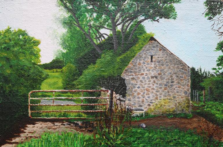This is my painting of an Old Barn which is located in the village were I live. We always go passed it when we take the dogs for a walk. I painted it in Acrylic paints on a Hessian canvas. I like the course open weave on Hessian. I like to stretch my own canvas over frames that I make myself. I thin...
