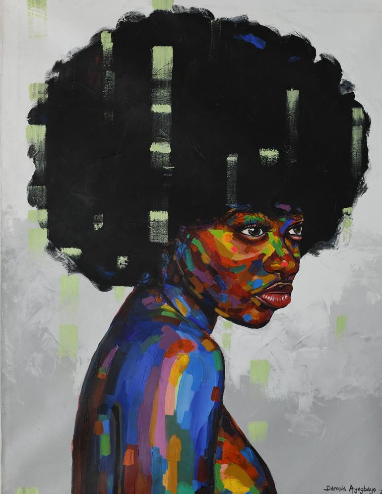 Damola Ayegbayo is an acclaimed visual artist, celebrated for his mastery in paintings and drawings that deeply reflect his personal heritage and cultural narratives. Born in 1988 in Ejigbo, Osun State, Nigeria, Damola pursued his passion for art at Obafemi Awolowo University, earning a Bachelor’s degree in Fine and Applied Arts. Damola’s art has gained international attention and acclaim. Notably, his work was commissioned for the 2023 film adaptation of “The Color Purple.” He also gained recognition in the world of digital art, being the only African artist featured in the World of Women NFT projects, collaborating with prominent platforms such as OpenSea and Saatchi Art. Damola has exhibited his work globally, including in Nigeria, the US, the UK, Canada, and Europe. His paintings have been auctioned by renowned houses like Jasper52, LiveAuctioneers, and Bidhaus, and have found homes with private collectors such as Marcus Gardley, Jimmy Akingbola, and Lisane Basquiat. In 2022, his piece “Unconditional Love 2” was featured on the cover of HarperCollins Publishers’ “Relations: An Anthology of African and Diaspora Voices.” His work “Purpose of Existence” was used in a campaign by Cambridge University Press to promote black women’s mental health. In 2023, his artwork “Vision of Hope” was highlighted in Jimmy Akingbola’s documentary “HANDLE WITH CARE.” The name of my painting style is called ÀBÈFÉ meaning ( pleaded to be loved) which is my native name. my craft is an expressionism style of art, I use portraits of beautiful black women to speak to society about morals, good behavior, love, and unity. an image of a black beautiful woman always reminds me of how my strong mother trained and brought me up with love and good morals helping me to discover my real self, the concept of using a black woman is a great reference to my loving mother and the role Other women had played in my life, their importance and existence in the world can not be underestimated. He is inspired by his late grandfather that was a painter, sculptor, and ceramist from a tender age, as his love to practice art increased in the university by meeting with greater like minds in the department and visits many art galleries and art departments in other universities, also traveled to historic ancient cities and art workshop etc..