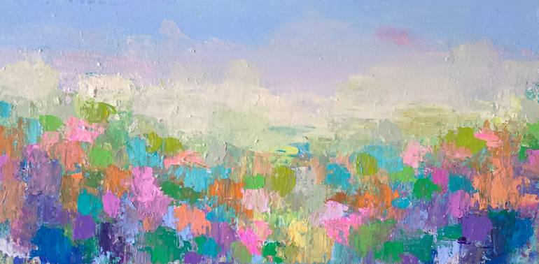 Abstract impressionist landscape, 30x60x4cm. I like to see colour in everything, patches of sunlight and shade and summer light inform this semi abstract landscape painting. I use beautiful quality acrylic paints, mostly Golden acrylic, and Lascaux, and a large variety of brushes and palette knive...