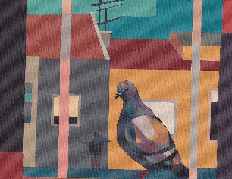 The view from my kitchen window. Acrylic painting on canvas, ready to hang.