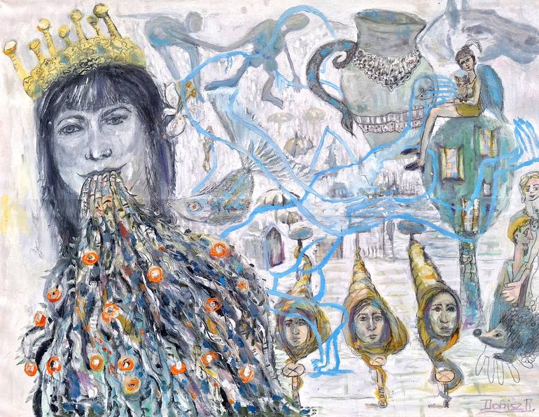 Discover the Power of Spoken Words – “The Power of Spoken Words” This painting is more than just an image; it’s a story where the memories of past generations come to life in the petals of flowers and the deep shadows of roots. Roots emerging from a woman’s lips carry ancient speech — whispering fe...