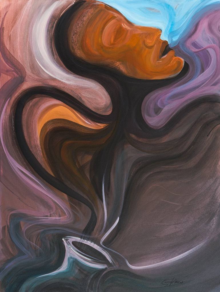 This painting is shown here matted but it is sold without the matting and without the frame. You can ask a professional to mat and frame the painting, and choose whichever colors will best fit in the room where you will hang the painting. Ce tableau est présenté ici dans un cadre avec passe-partout...