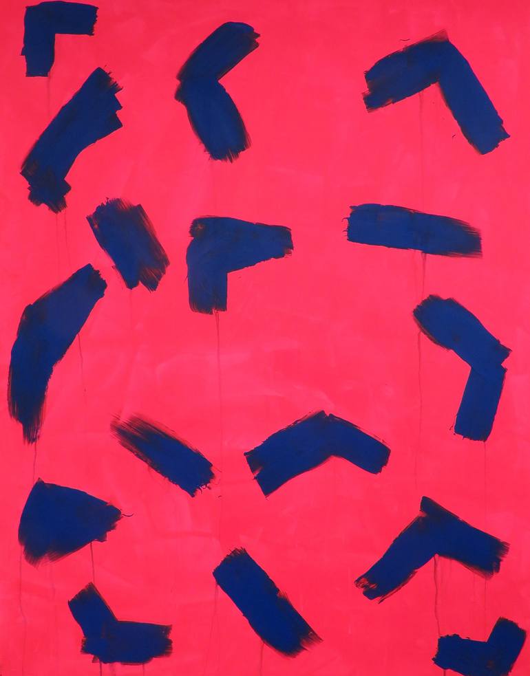 Abstract expressionist acrylic on stretched canvas. Inspired by the song "The Real Thing" by Kenny Loggins. Very lively and poignant, possibly a statement piece. Fluorescent, vibrant pigments in deep layers. Side edges are painted. Large format 58" x 46".Wired, stretched and ready to hang for displa...