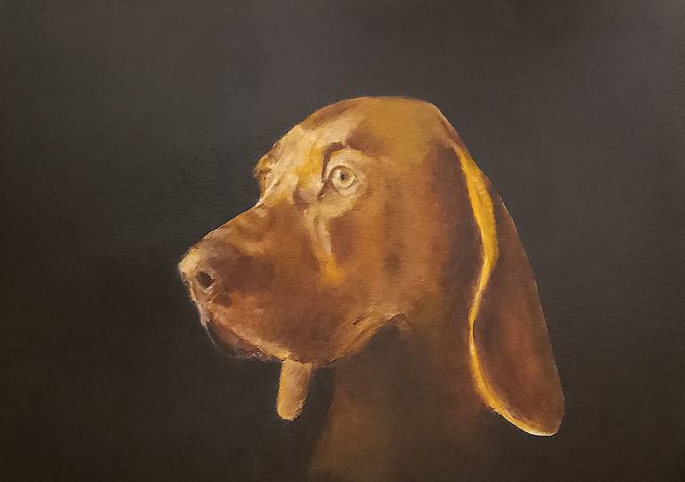An original portrait of 'The Red Dog'. Oils on canvas board.