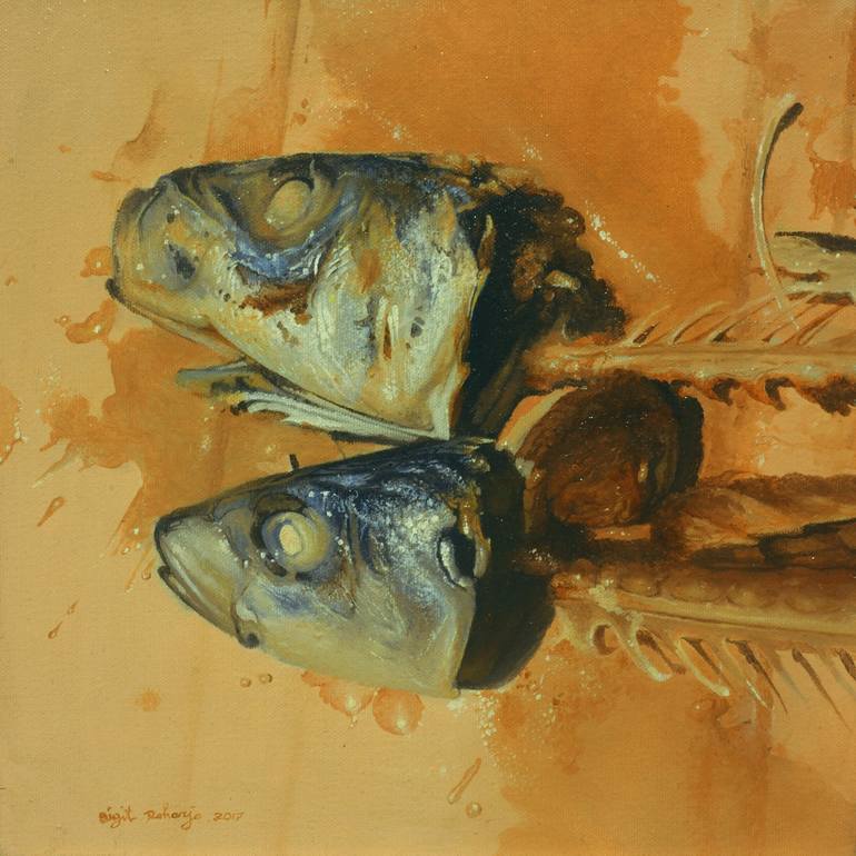 Object 2 sea fish heads, leftover lunch something unattractive. Ended up in the trash. These leftovers can still be enjoyed artistically when they are transformed into works of painting