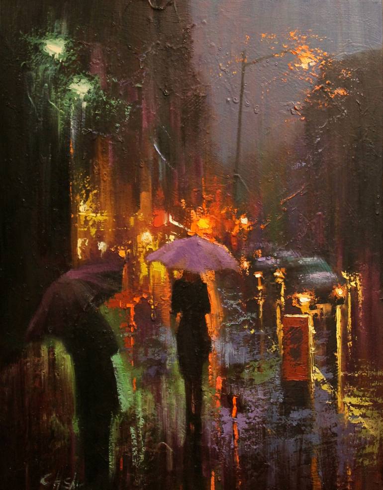 Oil on canvas 28 x 22 inches from New York City inspired by colors of the night inspired by Rain inspired by Music