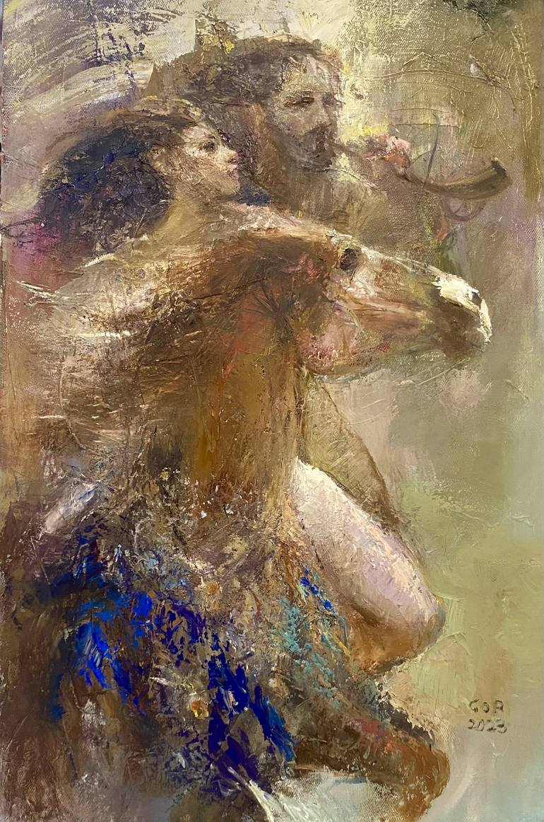 The artwork is one of the pieces dedicated to mythology. Gor gets his inspiration from mythological figures, as well as his dreams and visions. The artwork comes ready to hang and is in excellent condition.