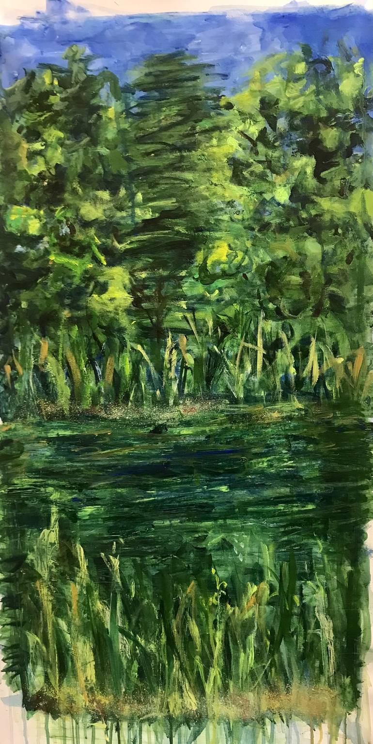The work was inspired by in situ watercolour and coloured pencil drawing sitting by the river. I also like the work of Caspar David Friedrich and Courbet Wanted to create an evocative atmosphere in the work I use acrylic as I find it dries quickly and also one can achieve varying textures and opac...