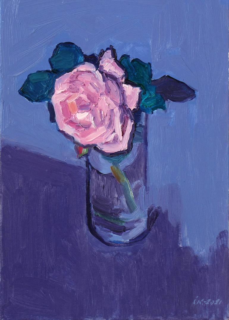 Ivan Kolisnyk, 1961, Ukraine. 'The Rose in Glass', oil on stretched canvas, 35x25 cm, 2021