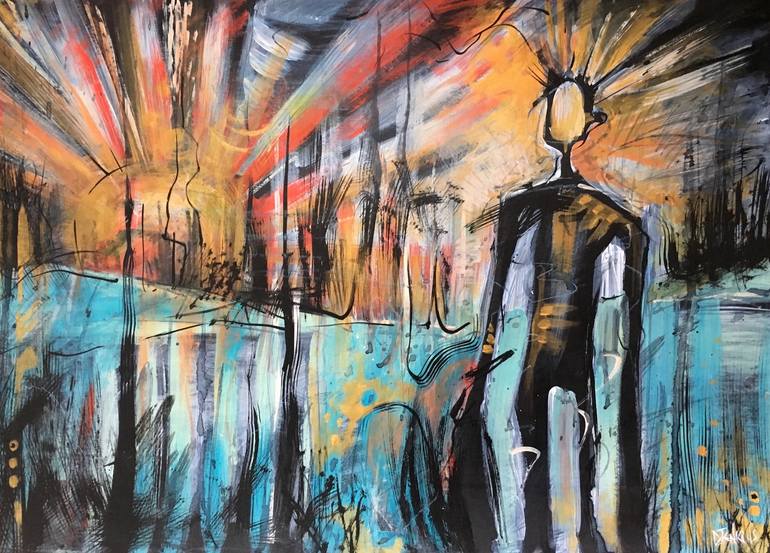 The Seeker - By Cheranne Dawn B.A (Hons), MioEE "This large mixed media image developed from a technique I use in automatic mark making, trying to release control until the composition becomes more apparent. I have painted this particular composition on several occasions in many different forms, I ...