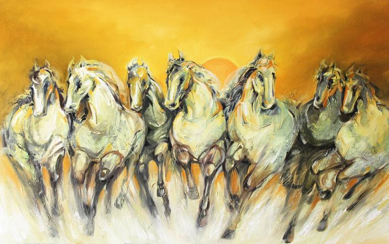 In today's world, the pursuit of a fulfilling life often centers around achieving success. We dedicate ourselves to reaching our goals, yet sometimes the desired outcome remains elusive. This original handmade acrylic painting on canvas, titled "The Seven Running Horse," serves as a powerful symbol ...