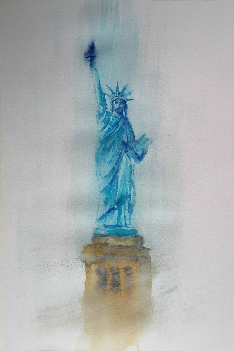 the symbol of New York city: the Statue of Liberty This artwork is done on 300 g Fabriano Artistico watercolor paper with ink colors. Signed on the front, the Certificate of Authenticity is included. Please don't hesitate to get in touch with me if you have any questions about this artwork.