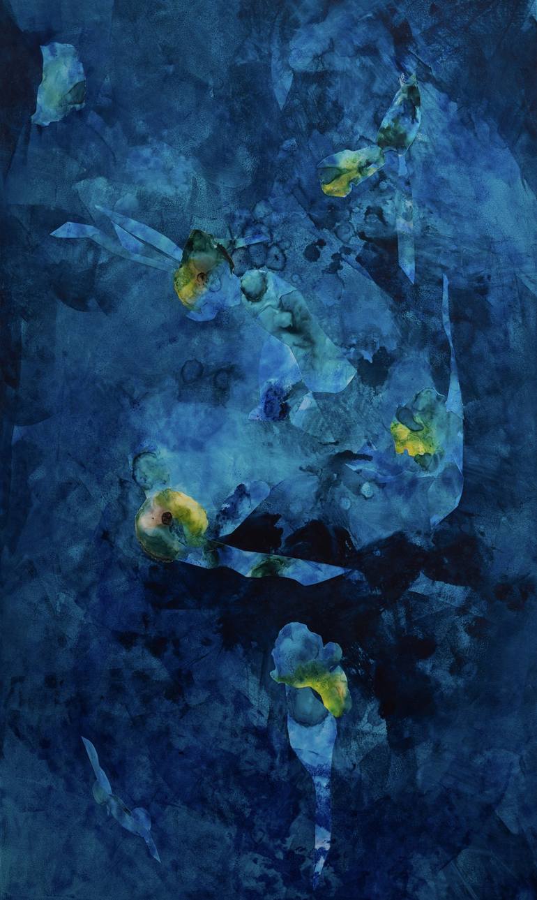 This painting explores the healing energy of the ocean. The watery elements and color evoke a feeling of calm in the chaos of everyday life. Reminding us to find peace from within. "Surrender to the stillness. You are deep pool of calm water."
