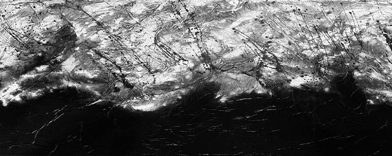 The Storm is a textural, abstract painting. Using a base layer of paper applied to the canvas creates a unique texture to paint on. Followed by layers of acrylic paint that are thinned and allow to flow. The final application of black drips and runs create the frenzy of the storm. The texture and c...