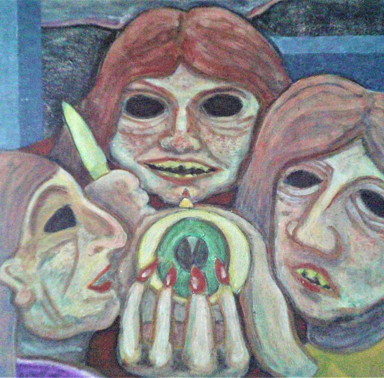 The Stygian witches shared one eye and one tooth ; this is my attempt to portray them . A one of a kind , original painting , painted from 'the imagination' on a sturdy 'canvas panel' .