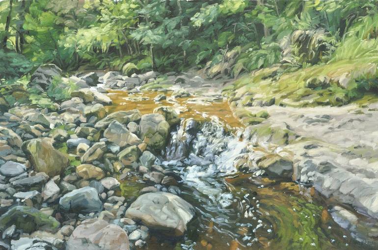 Landscape of Auvergne, France. I sought to capture the summer atmosphere through this river that dances between the stones. The light plays on the water, sketching luminous touches that reveal the vibrant green of the foliage. The stream, like a silver thread, winds with musical fluidity. The stone...