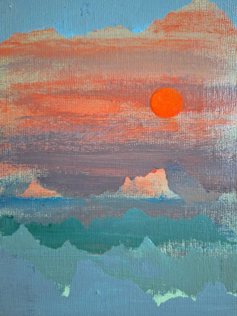 This painting has been inspired by the beautiful sunsets from the beautiful mountains I have been staying in Turkey.
