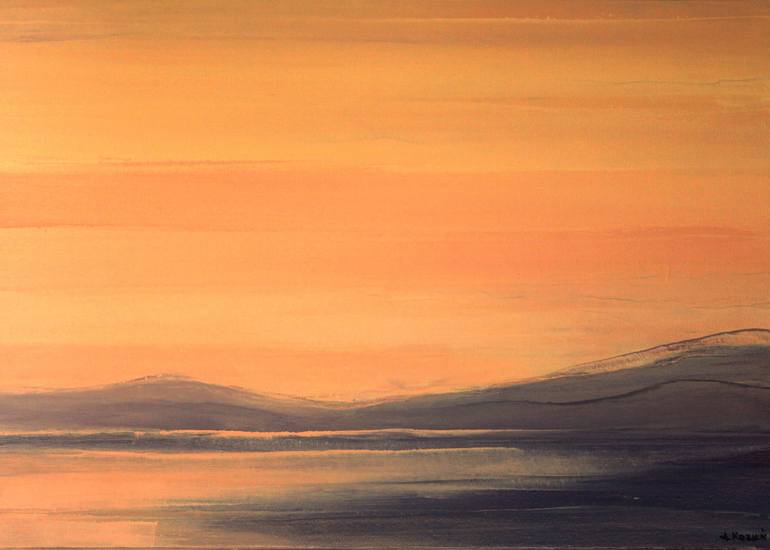 calm sunset over the sea... Original oil painting. Signed on the front. Ready to hang. No framing required. Edges painted white.