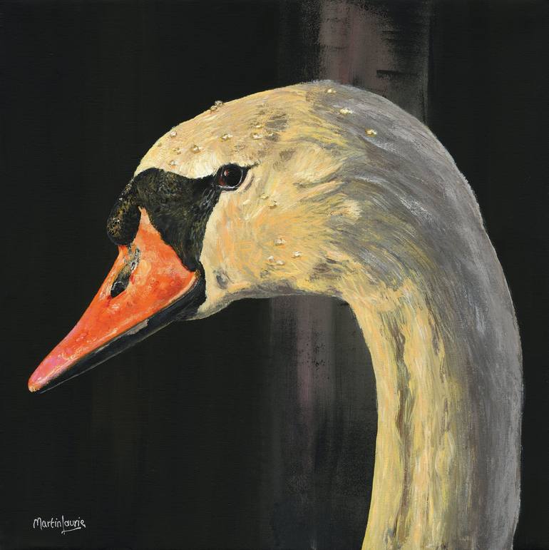 The beak is such a beautiful shape and colour. I have made the background somewhat abstract to focus attention on the bird which is spot lit by the evening sun. The swan combines strength with gracefulness. I hope that comes across in this painting. I find it very relaxing and pleasing to focus on...