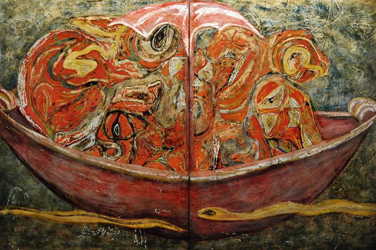 Detail of Medium : Silver, Gold leaves + Duck eggs + Natural Color from sand and stone + Cockroach-wing ( natural paint)